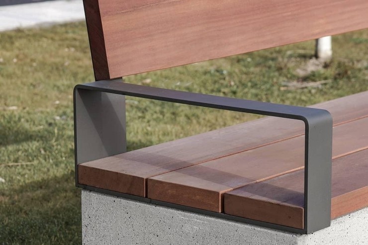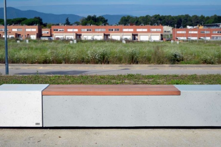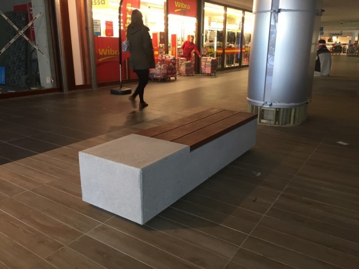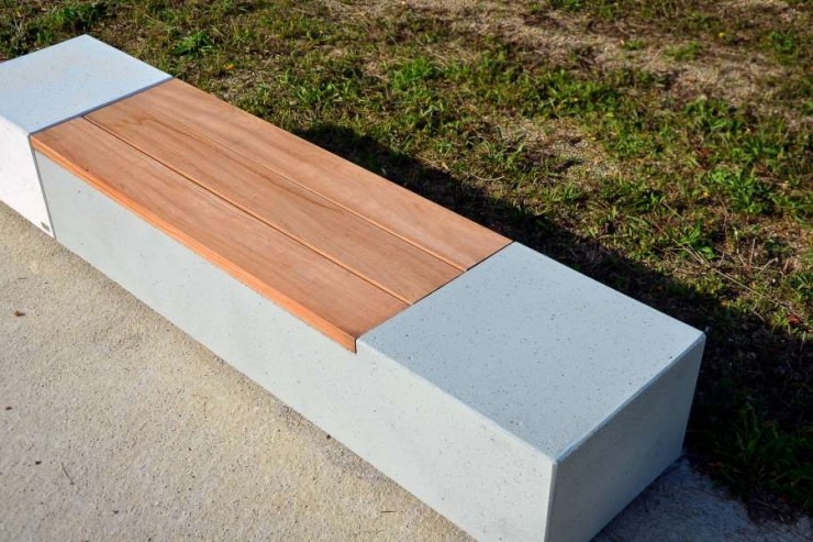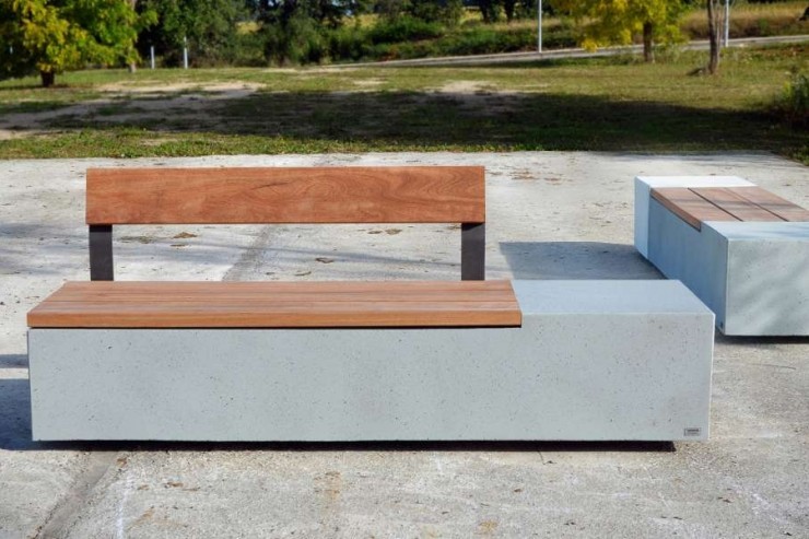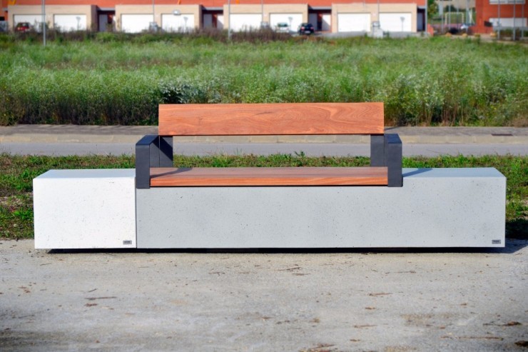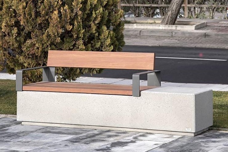 - Ruime collectie banken van beton met zitting en rugleuning van hout