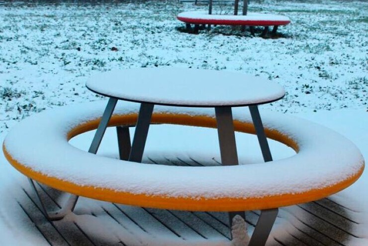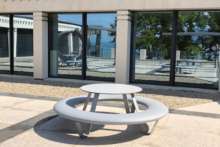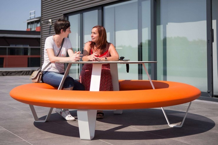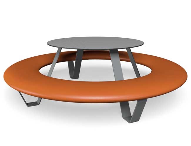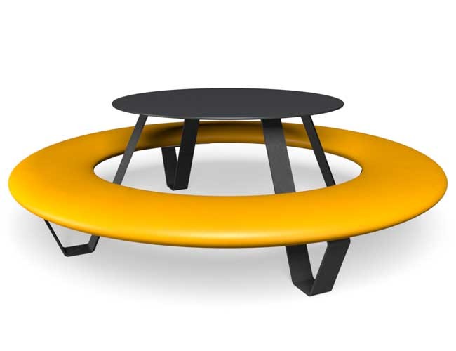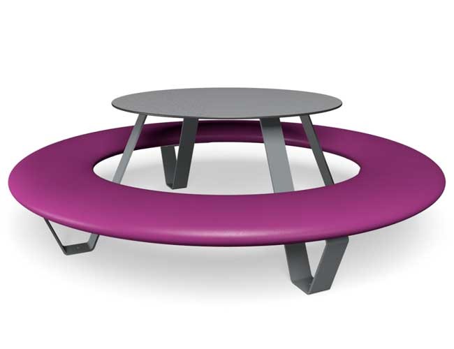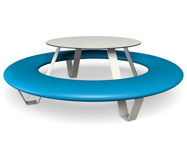 De Buddy bank met daarin een geïntegreerde tafel is een moderne variant van een ronde picknicktafel. Door haar ronde vorm is deze picknicktafel één van de meest sociale in haar soort. De tafel nodigt uit tot het maken van contact tijdens de lunch, een werkoverleg of pauze. Het HPL (hogedruklaminaat) tafelblad is eenvoudig schoon te houden en het zitvlak van polyethyleen is krasbestendig en voelt comfortabel aan, ook op koude dagen. Het onderstel is gemaakt van gegalvaniseerd staal. Kijk hier voor de Buddy bank en de Buddy bank met rugleuning.