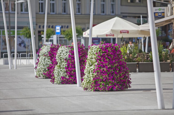 De Flower Tower is een prachtige, staande bloemenzuil die straten, pleinen en winkelcentra opfleurt. Met zijn imposante afmetingen is deze eyecatcher al van grote afstand zichtbaar. De Flower Tower is dé oplossing om direct een bloemenpracht toe te voegen aan een niet-groene openbare ruimte! De bloementoren is door zijn gewicht een zeer solide en vandalismebestendige constructie. Bekijk de uitgebreide brochure voor een overzicht van alle formaten en soorten constructies.