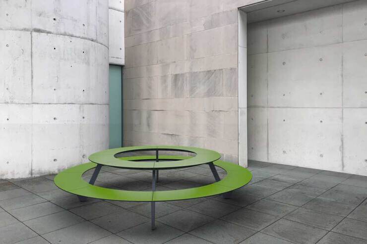 Duurzaam minimalistische vormgeving kenmerkt de King Arthur Picknicktafel. De picknicktafel is gemaakt van ranke, doch sterke elementen, waarmee 3 verschillende formaten picknickopstellingen kunnen worden geformeerd, van 8 tot 28 zitplaatsen. Of het nu gaat om winkelcentrum, schoolplein, bedrijf of sportvereniging, de King Arthur is een sociale picknicktafel die veel ruimte biedt voor gezellige ontmoetingen. Er is ook ruimte voor een rolstoelplaats.