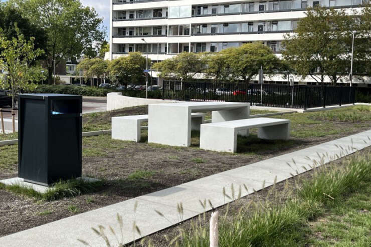 - Banken en tafel die in combinatie een natuurlijke picknickplek vormen