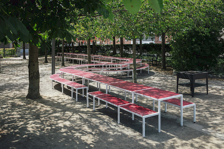 De Långbordet is een ecologische picknicktafel van Scandinavisch design. Deze in het oog springende modulaire picknicktafel verbindt in verschillende vormen en maten, ruimtes en mensen met elkaar. De ‘lange tafel’ zoekt al slingerend een weg in de beschikbare openbare ruimte en nodigt uit tot ontmoeten. En brengt mensen samen voor sociale activiteiten zoals lunchen, koffiepauzes en studeren.