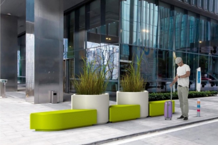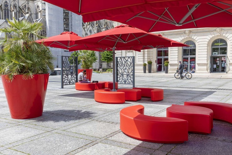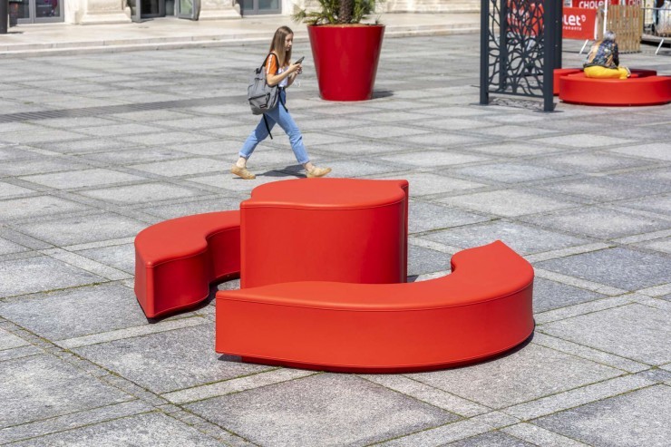 De druppelvormige Limone zitelementen en plantenbakken maken onderdeel uit van de Arabesque serie van het jonge Franse merk Moonako. De zitelementen verschillen in vorm en afmeting en zijn onderling koppelbaar. De organische ovale vormen en vrolijke kleuren zijn kenmerkend voor deze innovatieve serie straatmeubilair waaronder ook de Arco zitelementen en de Lungo banken vallen. Onderling kan eindeloos gecombineerd worden waardoor er op een vrolijke en speelse manier invulling wordt gegeven aan de inrichting van de openbare ruimtes zoals kantoren, parken, pleinen, beurzen, bibliotheken en musea.