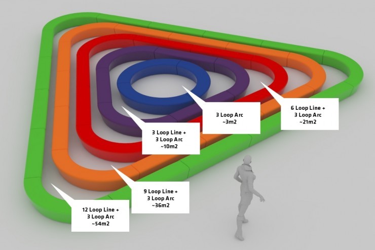 De Loop zandbak is een samenstelling van verschillende elementen uit de Loop familie. Door de Loop Corner, de Loop Line en/of drie Loop Arc elementen met elkaar de verbinden kunnen kleine en grote opstellingen voor zandbakken worden gerealiseerd. Ook de ronde Loop bank kan gevuld worden met zand waardoor het een praktische, wat kleinere zandbak vormt.