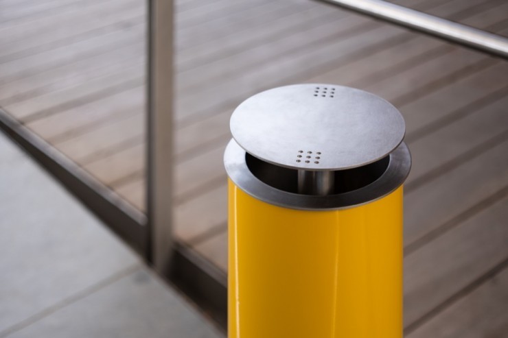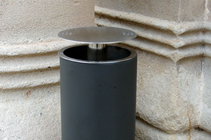 Asbak voor de publieke ruimte met modern, slank design. Buiten en binnen, in speciale rookruimtes, te gebruiken. Zowel verkrijgbaar in gepoedercoat, roestvrijstaal als in cortenstaal. Een opvallende gele of rode kleur zal rokers extra aanspreken de sigaret in de asbak te doven. Een ideale toevoeging aan een rookruimte of rookplek die rokers uitnodigt de omgeving schoon te houden. Voorkomt rondslingerende peuken op de grond. Eenvoudig te legen. Binnenbak veilig verankerd aan de asbak met behulp van vandalismebestendige kabel.