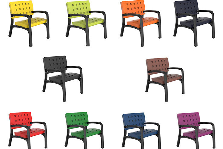 Stoel Modo is een robuuste, speelse stoel van polyethyleen en verkrijgbaar in 10 vrolijke kleuren. De rugleuning en de zitting hebben een geperforeerd motief waarbij het regenwater makkelijk wegloopt. Deze stoel is sterk, UV-bestendig en bestand tegen elk weertype. De Modo stoel wordt vaak samen aangeschaft met de Modo bank om zo een gezellige zithoek te creëren. Deze kleurrijke serie wordt vaak toegepast op een school, bibliotheek, camping, sportvereniging of in een vakantiepark.