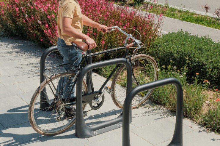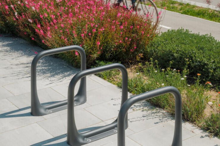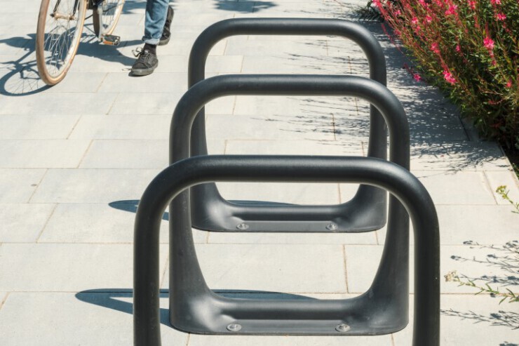 Nomad is een robuust fietsenrek dat past in iedere stedelijke omgeving. De fietsbeugel is gemaakt van 100% gerecycled polyethyleen, wat voorkomt dat fietsen beschadigen. Met vier verankeringspunten biedt Nomad plek aan twee fietsen. De buisvormige structuur en de roestvrijstalen bewapening maken het rek duurzaam en vandalismebestendig. Nomad is geschikt voor alle openbare ruimtes en wordt veel toegepast bij scholen en winkelcentra.