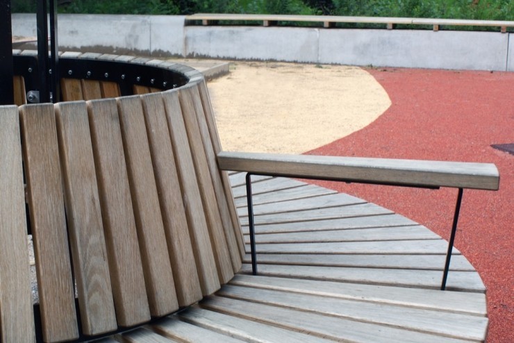 Vier afzonderlijke modules van de bank Orm vormen gezamenlijk een perfecte cirkel. Ideaal als boombank waaronder ontspannen kan worden in de schaduw. Orm bank leent zich hiermee ideaal voor parken en andere openbare ruimtes en stedelijke gebieden. De banken kunnen ook per twee worden geplaatst om een halve cirkel of een slinger te vormen. De zitting van deze buitenbank is gemaakt van geolied eiken en het frame van staal. Diverse opstellingen en combinaties zijn in deze brede meubelserie mogelijk zowel met rugleuning als zonder rugleuning of armleuningen te leveren.