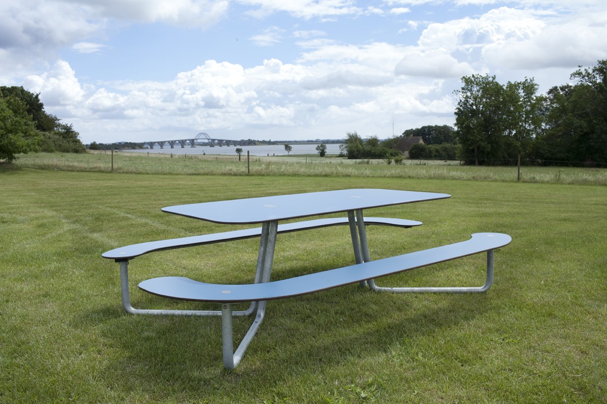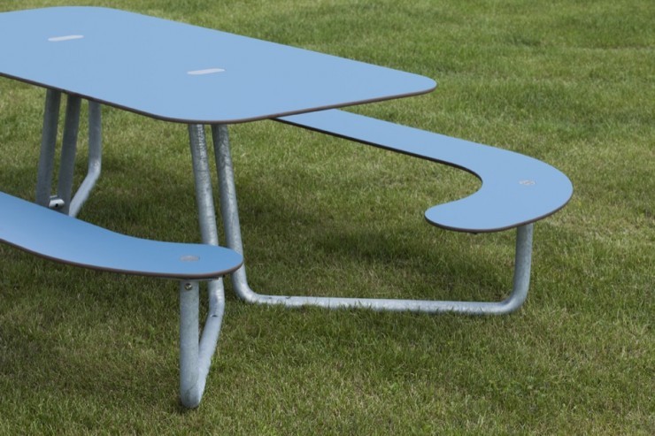 Picknicktafel Plateau-L is het instapvriendelijk model uit deze serie speciaal geschikt voor ouderen en kinderen en heeft 8 tot 10 zitplaatsen. Deze fraaie tafel met geïntegreerde bank nodigt uit om lekker uit te rusten, te werken, contact te maken of een maaltijd te nuttigen in de (semi) openbare binnen- en buitenruimte. Plateau is excentriek, praktisch en duurzaam ineen. De minimalistische uitstraling past binnen de ruime traditie van het Scandinavische design. Het tafelblad en het zitvlak van de bank zijn gemaakt HPL (hogedruklaminaat).