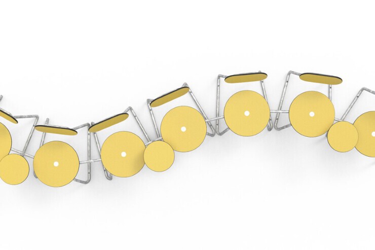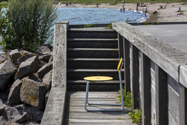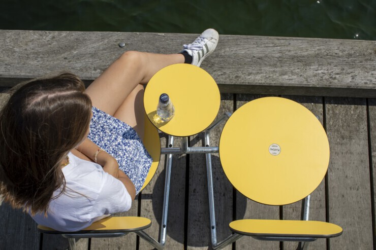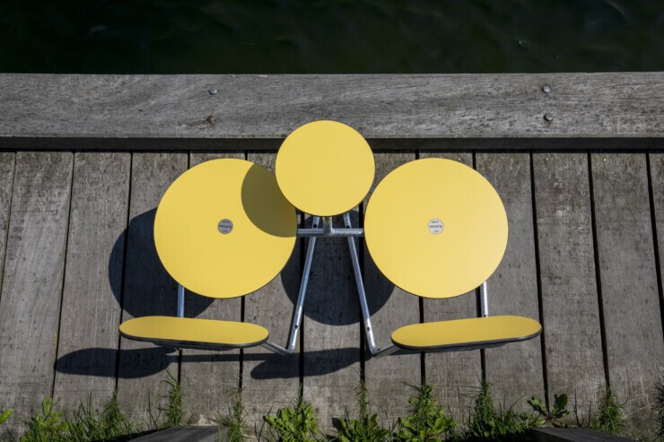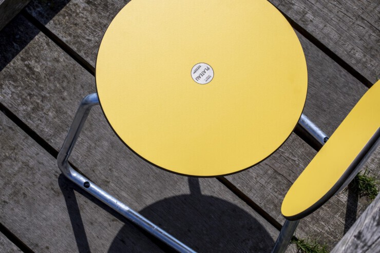 Het zitvlak en de rugleuning zijn gemaakt HPL (hogedruklaminaat) en het frame is van thermisch verzinkt staal. Op iedere stoel zit een RVS schijf. Deze schijf kan worden bedrukt met een naam of bijvoorbeeld een bedrijfslogo.