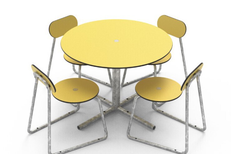 Zitvlak en tafelblad: HPL (hogedruklaminaat), frame: thermisch verzinkt staal.