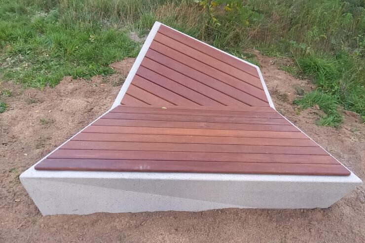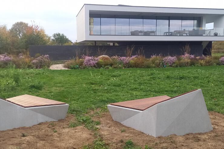 Architectonisch beton - gezuurd - waterproof gemaakt. Optioneel met zitting gemaakt van tropisch FSC hout.