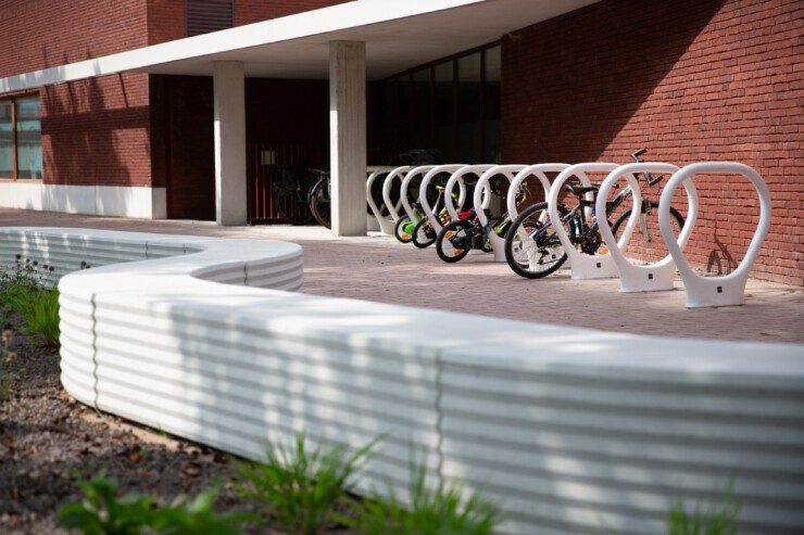 De Superlock fietsbeugel heeft een ontwerp dat zich aanpast aan diverse soorten fietsen, zowel gewone fietsen als elektrische fietsen. Dit opvallende fietsenrek biedt een grote veiligheidsgarantie omdat fietsen op drie verschillende punten kunnen worden bevestigd. De fietsbeugel is in diverse opvallende kleuren verkrijgbaar waardoor fietsers automatisch worden uitgenodigd hun fiets aan de beugel te parkeren. Vervaardigd uit gerecycled polyethyleen met een binnenwerk van UHPC-beton maakt de beugels vandalismebestendig en voorkomen zij dat fietsen zullen beschadigen.