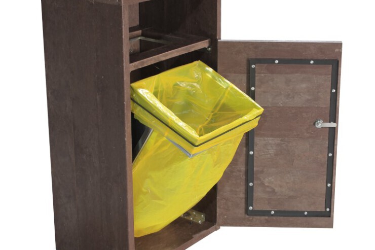 De bak heeft een inhoud van 90 liter en is verkrijgbaar in 2 varianten: een inwerpopening aan de voorzijde of een opening aan beide zijden. Deze eco-vriendelijke afvalbak is standaard uitgerust met: deur aan voorzijde, eenvoudig leegsysteem met uitklapbare zakhouder, regenkap en ondersteunende voetjes. Raadpleeg de uitgebreide brochure voor een overzicht van alle standaard en niet-standaard accessoires. De Tyrol afvalbakken zijn uitermate geschikt voor de openbare buitenruimte zoals parken, pleinen en winkelcentra.