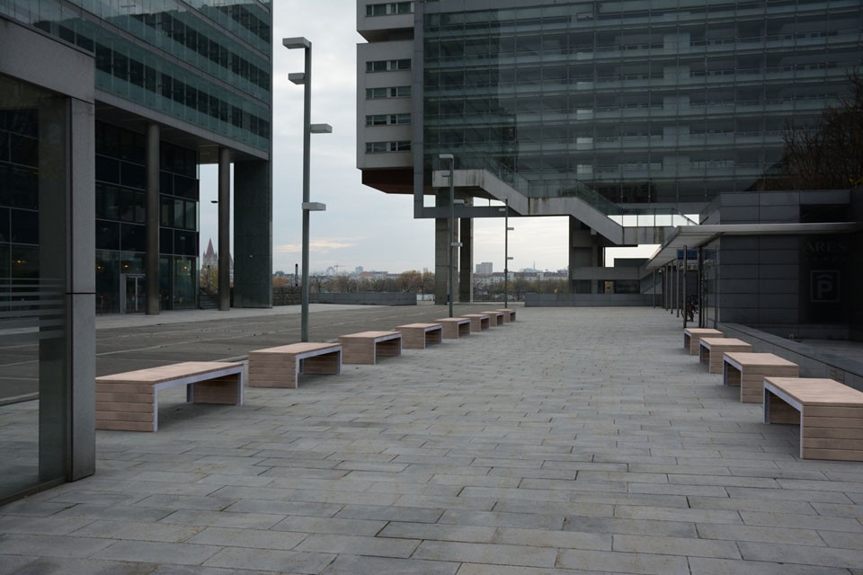 De Woodrow bank maakt onderdeel uit van de Woodrow serie meubilair voor de openbare ruimte waaronder ook de Woodrow tafel en Woodrow kruk valt. De zitting van deze bank, het krukje en het tafelblad is opgebouwd uit latten van larikshout of essenhout. Het frame van deze serie straatmeubilair, dat zowel geschikt is voor binnen als buiten, is gemaakt van thermisch verzinkt en gepoedercoat staal.