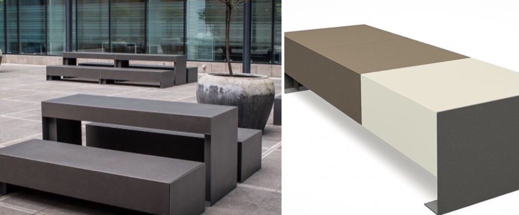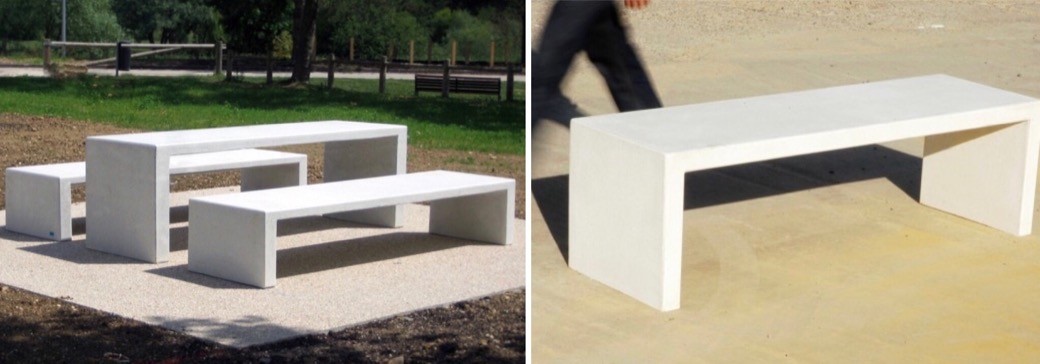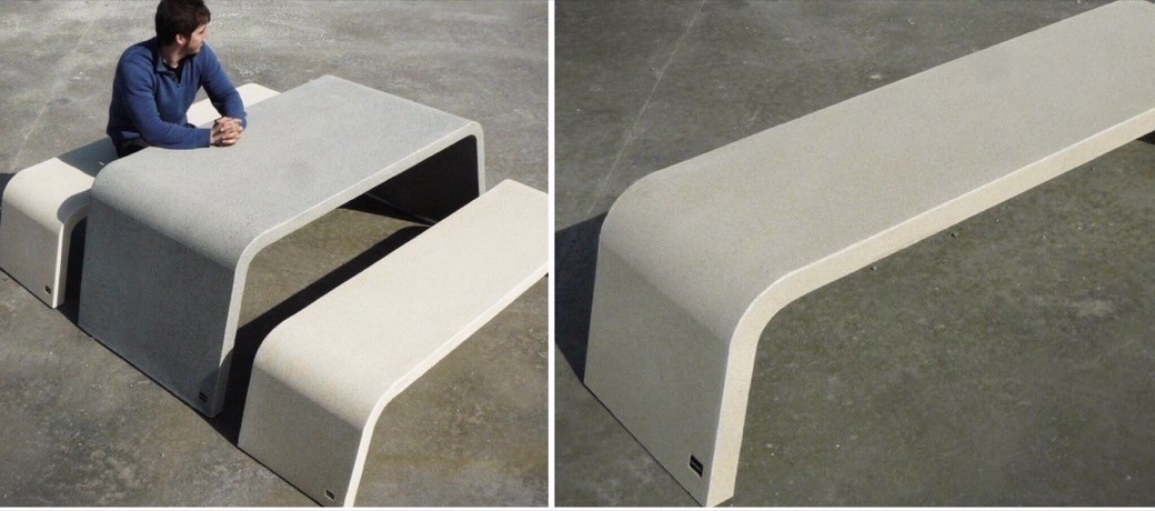 Dat beton ook elegant kan zijn bewijzen de banken en de tafel uit de serie Lamina. Vervaardigd uit gewapend beton en dus vandalismebestendig en duurzaam.
