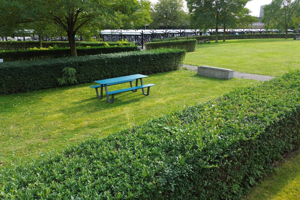 Het schoolplein kon wel wat kleur gebruiken. De keuze is gevallen op de fris blauwe Picnic HPL tafel van hogedruklaminaat met een onderstel van stevig staal. Hout was geen optie, omdat dit onderhoud vereist. Hogedruklaminaat onderscheidt zich door hoge kwaliteit en onderhoudsvriendelijkheid. Het HPL-oppervlak is glad, bestand tegen alle weersomstandigheden, hygiënisch en gemakkelijk schoon te houden.