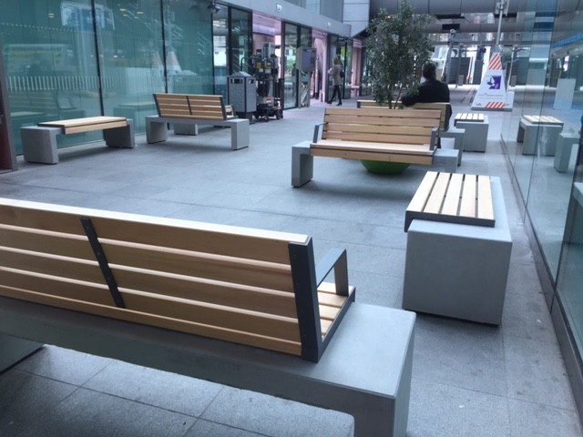 Comfortabele Hop Hop banken voor station Den Haag Centraal