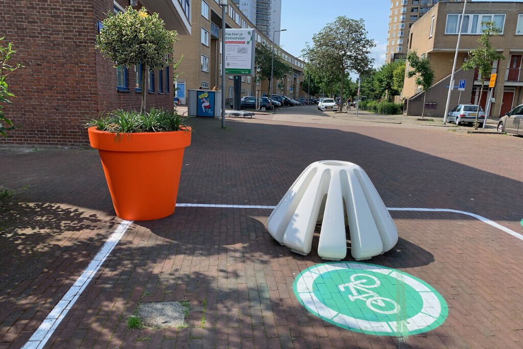 Vanwege werkwerkzaamheden worden reizigers van en naar Katendrecht dit najaar gestimuleerd om op gebruik te maken van duurzaam deelvervoer. Op een viertal plekken in de wijk zijn mobiliteitshubs geplaatst waar men gebruik kan maken van deelscooters, deelfietsen en deelbakfietsen. Het doel van deze hubs is dat de verkeersdrukte wordt verspreid over de wijk en reizigers minder vertraging ervaren. De mobiliteitshubs zijn te herkennen aan de opvallende huisstijl, borden en belijning op het wegdek. Tjinco heeft bij iedere hub een betonnen fietsenstandaard en een opvallende oranje bloempot in reuzenformaat geplaatst. Deze in het oog springende objecten zijn zeer herkenbaar door ontwerp, hoogte en kleur.