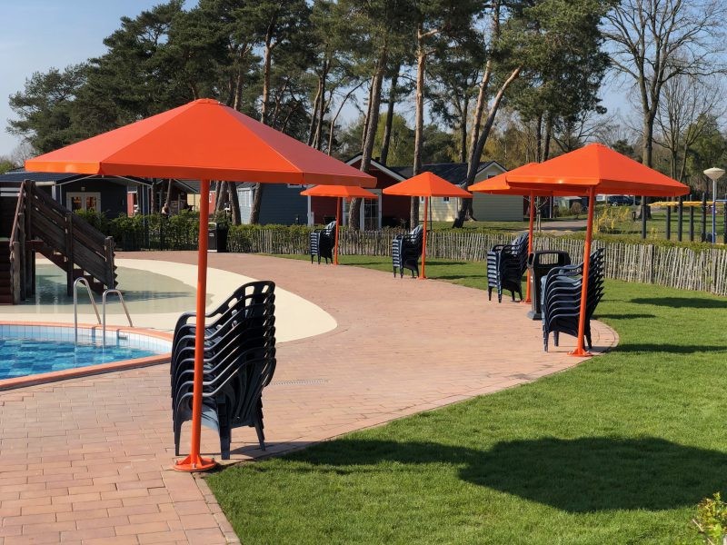 Four Seasons Parasols rondom zwembad Camping de Molenhof