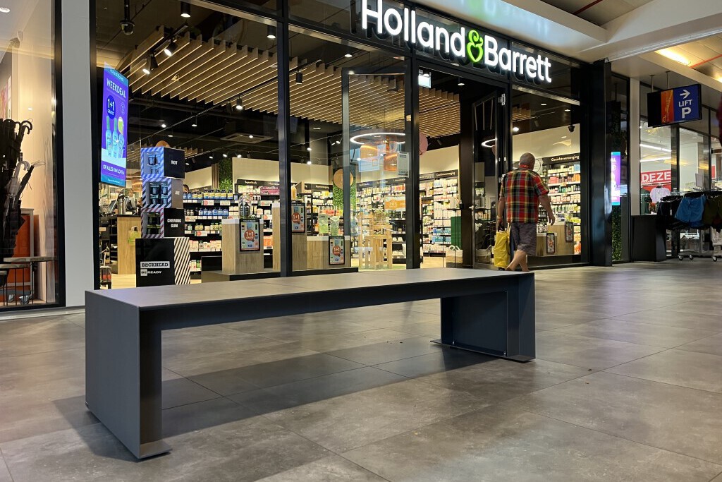 Bezoekers, waaronder veel ouderen, kunnen lekker uitrusten en bijpraten op de Passepartout HPL wachtbankjes. Deze strakke en stijlvolle bank sluit qua vormgeving goed aan bij het interieur van het winkelcentrum. Het is een groot voordeel dat de Passepartout HPL leverbaar is in maar liefst 19 kleuren! Voor het zitgedeelte is er gekozen voor een grijze kleur die perfect matcht met de tegelvloer van het centrum. En dankzij het gebruik van hogedruklaminaat zijn de banken makkelijk te reinigen.