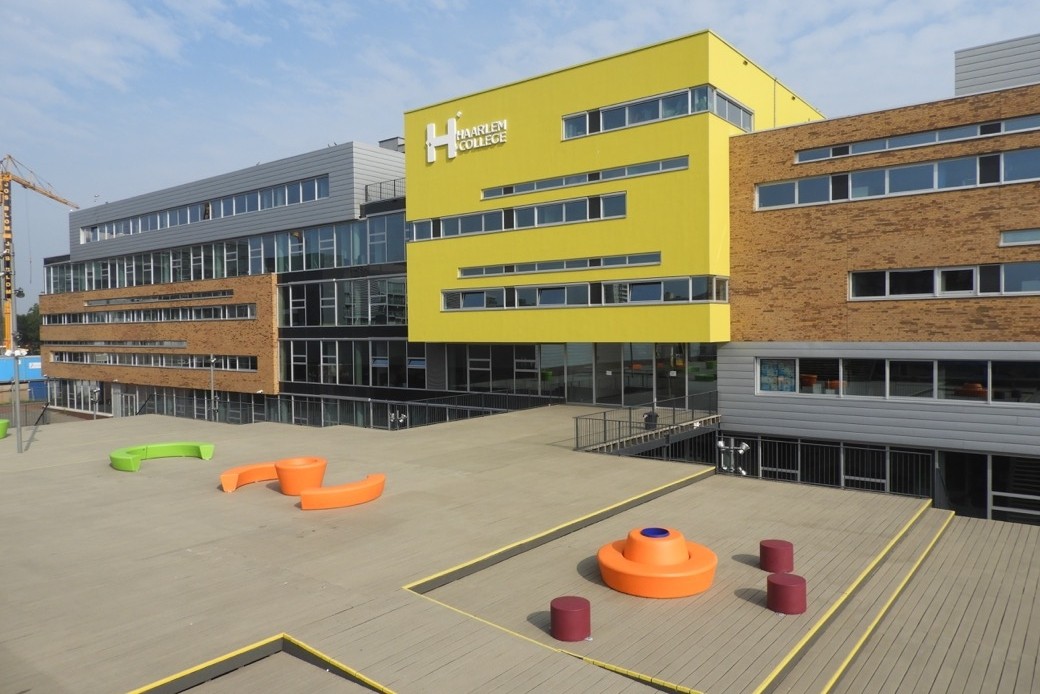Haarlem College start schooljaar met stoer en kleurrijk meubilair op schoolplein