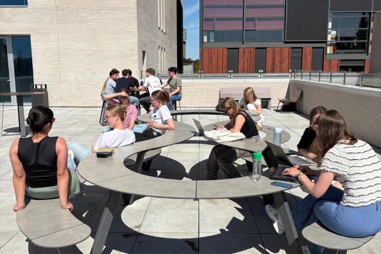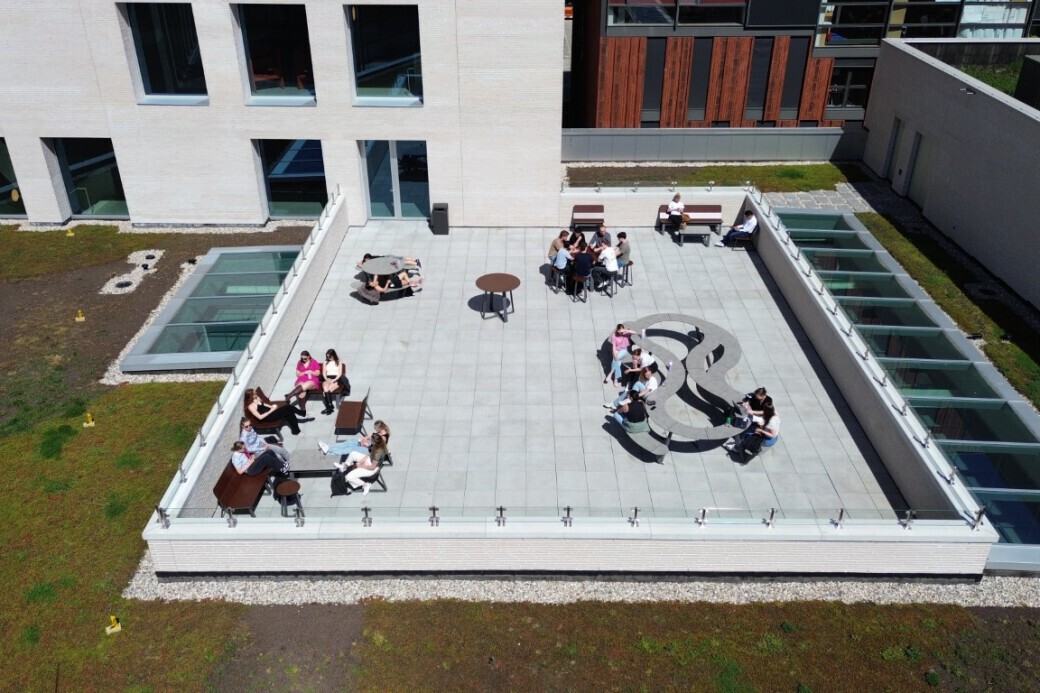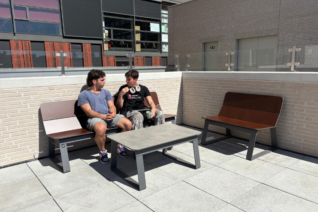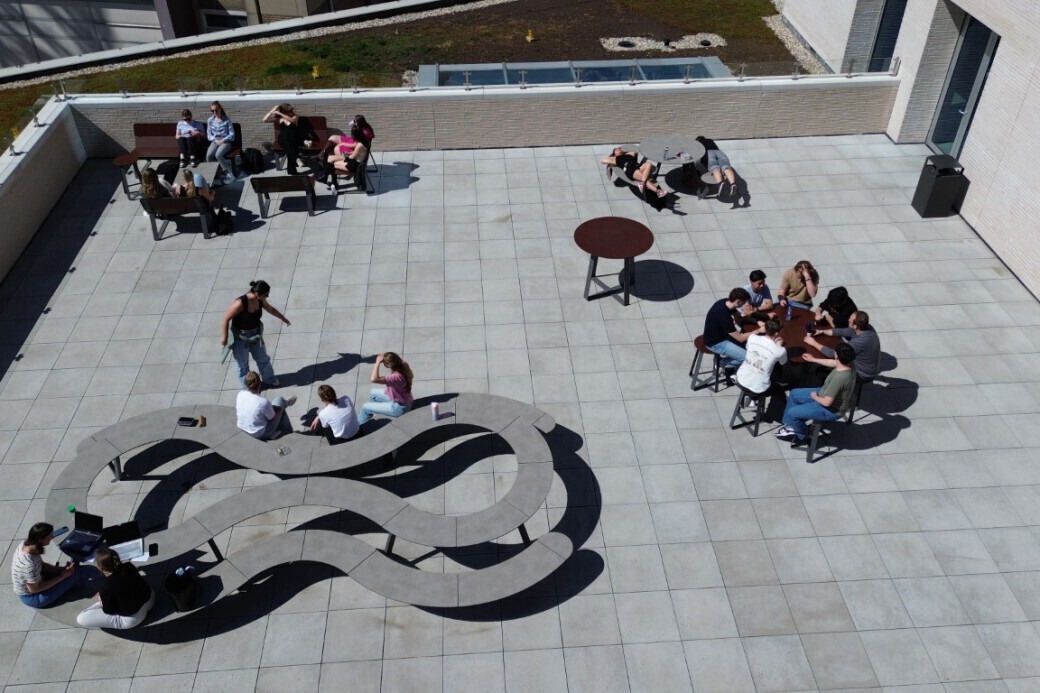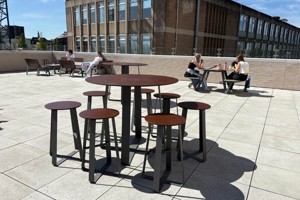 Nieuw meubilair op het dakterras van de Rijksuniversiteit Groningen