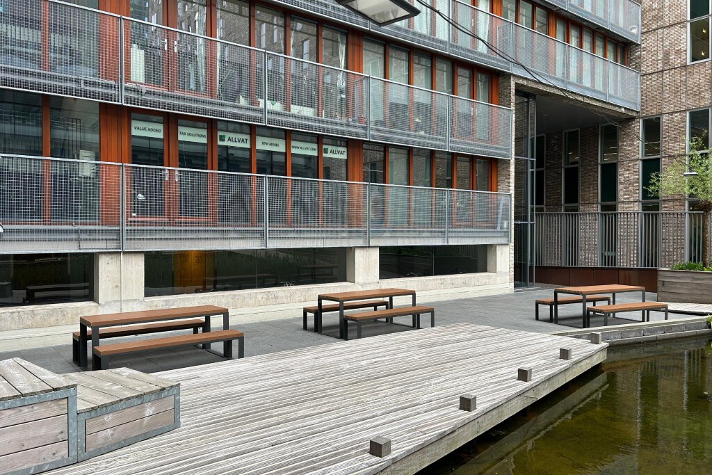 De inrichting van de binnentuin is tot stand gekomen in samenwerking met CBRE B.V. – Amsterdam. Het plaatsingsteam van Tjinco heeft het meubilair gemonteerd en zorgvuldig geplaatst.