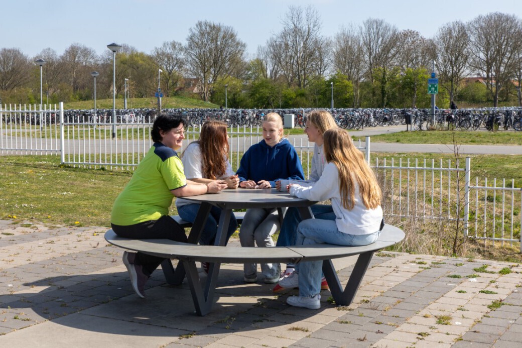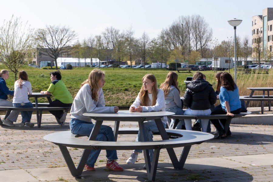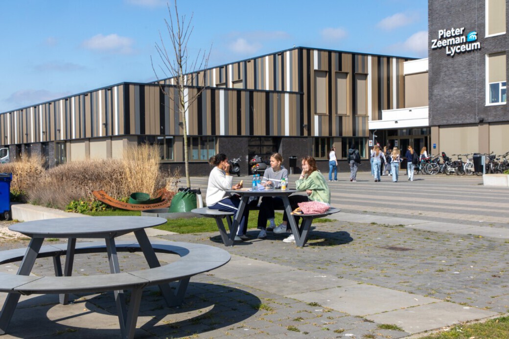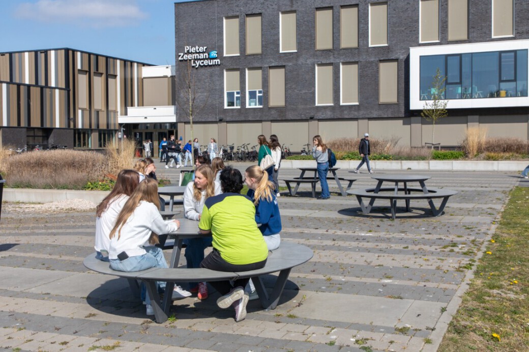 Het Pieter Zeeman Lyceum in Zierikzee had een duidelijke wens: het schoolplein moest aantrekkelijker worden en leerlingen moesten worden gestimuleerd om in de pauzes vaker naar buiten te gaan. De school was op zoek naar stevige, vandalismebestendige zitelementen die verankerd konden worden in de grond om diefstal tegen te gaan. De voorkeur ging uit naar picknicktafels in ronde vormen die uitnodigen tot samenkomen.