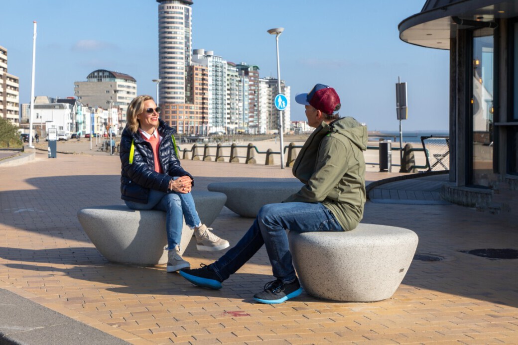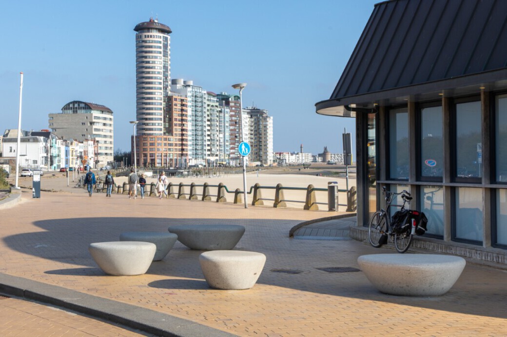 De Supercell Zitelementen sluiten qua vorm en kleur naadloos aan bij de sfeer van de boulevard. Het beton is gezuurd en waterproof gemaakt, waardoor de elementen niet alleen een stoere uitstraling hebben, maar ook uitzonderlijk duurzaam en vandalismebestendig zijn. De ovale zitstenen zijn geleverd in twee formaten en standaard voorzien van een anti-graffiticoating. Door verschillende elementen uit deze betonnen reeks te combineren, ontstaat een speels en uitnodigend geheel voor elke samenruimte.